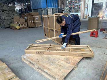 下單後等了大概一周,機器和其他幾個配件陸續到了倉庫。果然,客服發來了一段視頻,畫面裏機器通著電,四副牌在軌道裏流暢地迴圈、碼放,一切正常。接著又收到了打包完成的照片,機器被嚴嚴實實地裹在木架裏。我在APP上確認了所有費用——倉儲、驗貨、木架加固、運費,每一項都列得清清楚楚,收費透明讓我放心地提交了發貨指令。
